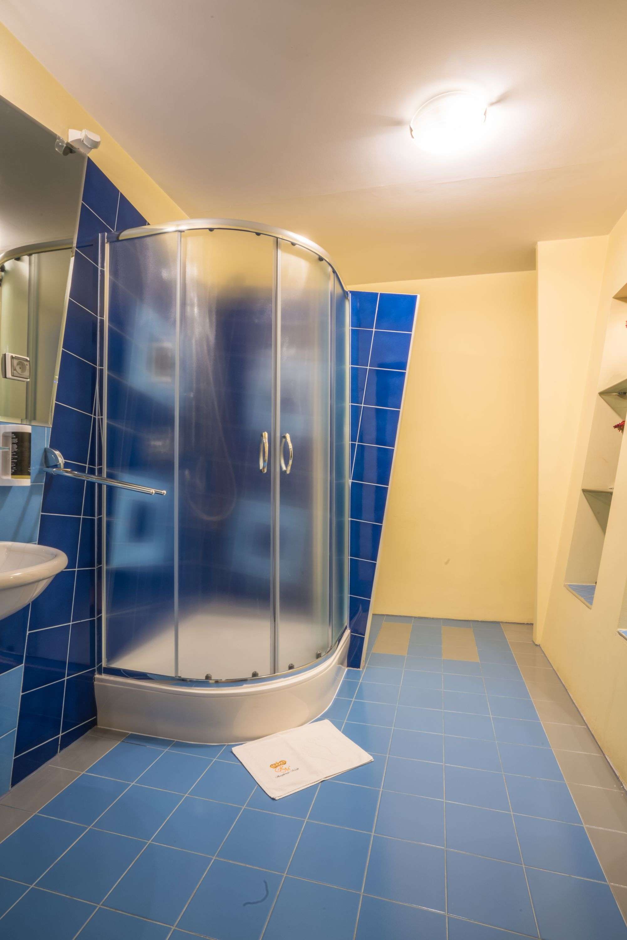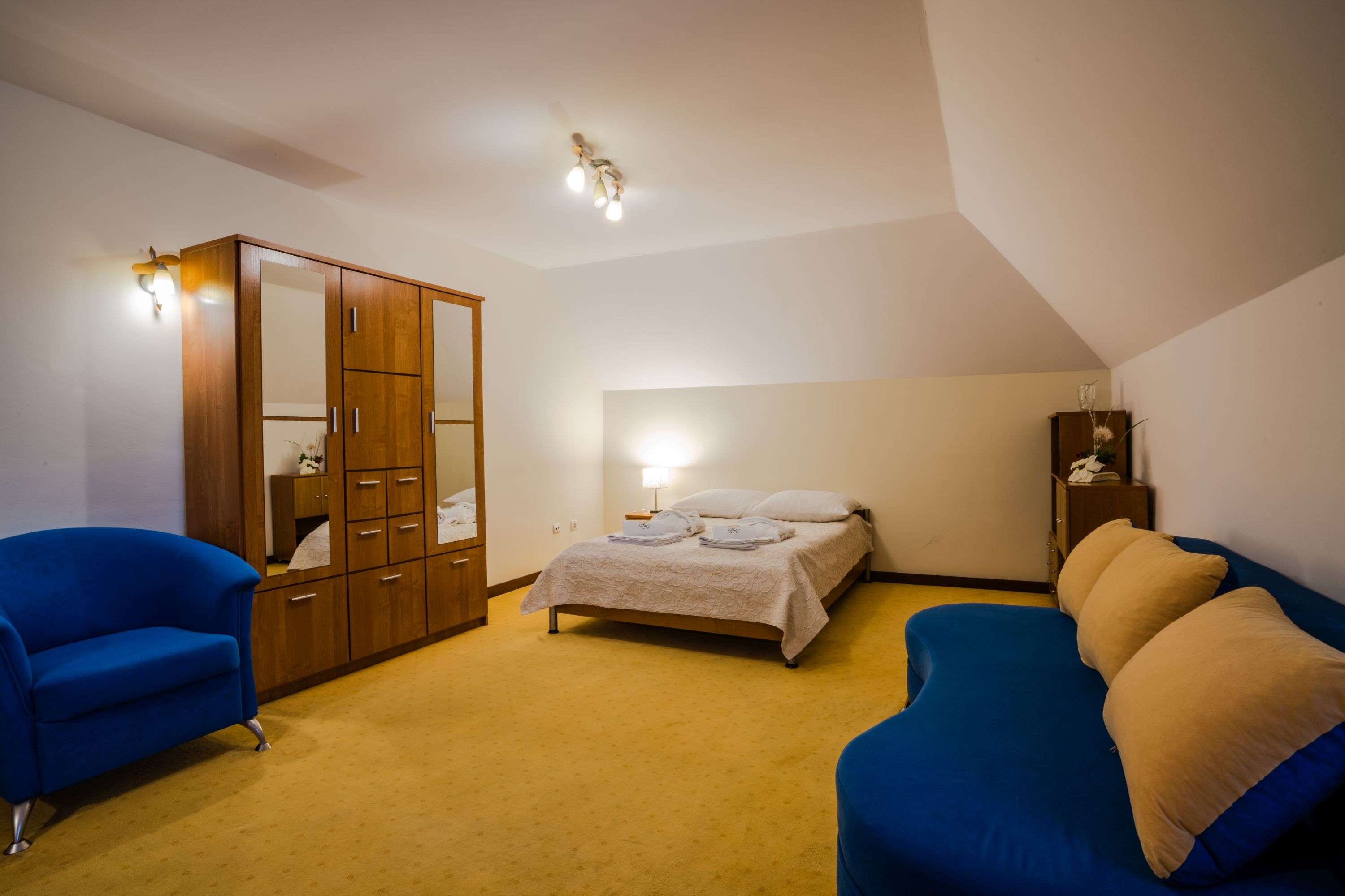To apartament rodzinny złożony z dwóch pomieszczeń, sypialni z łożem małżeńskim o wymiarach 140cm x 200cm i rozkładaną sofą (140cm x 190cm), oraz małego pokoju (ciemny) z rozkładaną dwuosobową wersalką. max 6 osób. pierwszy pokój 2osoby – łózka małżeńskie+2 osoby rozkładana kanapa, drugi pokój 1lub 2 osoby – wersalka. Telewizja satelitarna NC+.