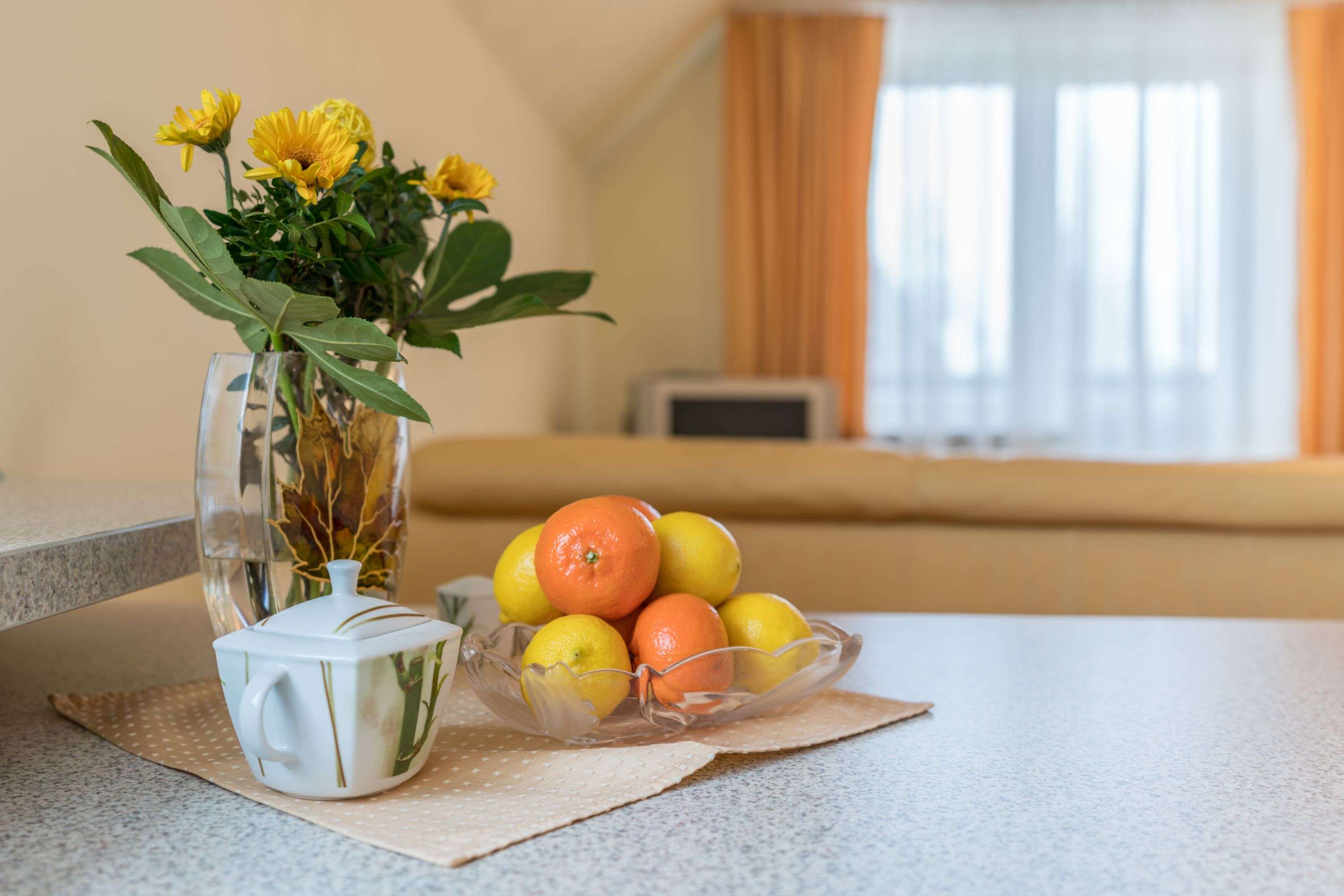 Apartament Słoneczny (I piętro), Bursztynowy i pokój Lawendowy (II piętro) są z aneksami kuchennymi i wejście do nich jest z klatki schodowej.